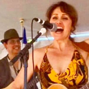 Eliana and Pete jamming their gypsy melodies and brining joy and happiness to everyone who hears them.